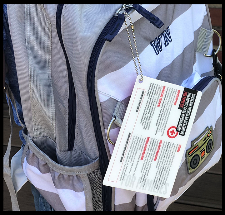 During an emergency, it’s important to communicate care recommendations specific to Duchenne with doctors, nurses, and hospital administration. PPMD has created several items that can help parents and individuals communicate emergency acre guidelines if their child suddenly becomes sick or injured. This bundle includes a magnetic refrigerator folder to document important medical information, a weatherproof card with emergency information that can be attached to wheelchairs or backpacks, emergency wallet card, and QR code stickers and bookmarks that highlight important information and take users to PPMD’s Emergency Information website. (Download Preview)