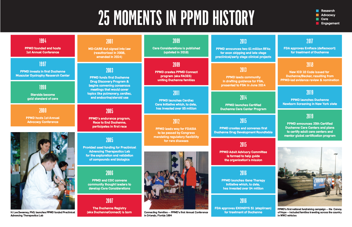 We continue to invest in nearly all potential therapies, amplify every single voice as we advocate to both local and federal governments, and offer support and care for each family living with a diagnosis. For 25 years, PPMD has helped to change the landscape of Duchenne in research, advocacy, care, and engagement.